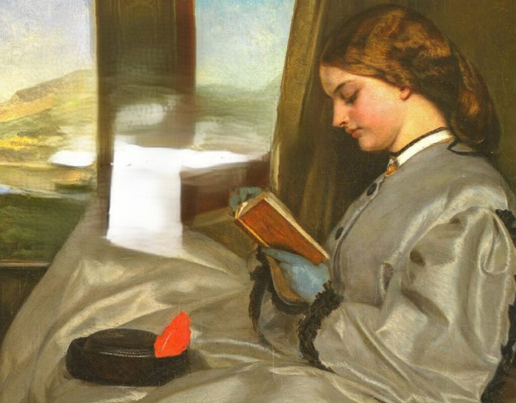 Udsnit af Elin Lis Johansens maleri på forsiden af Modersmål-Selskabets bog, “Er der en sendelektor til stede?”